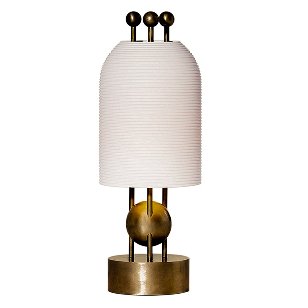 Настольная лампа в виде фонаря с белым фактурным абажуром Echoes of Light Белый Латунь в Кирове | Loft Concept