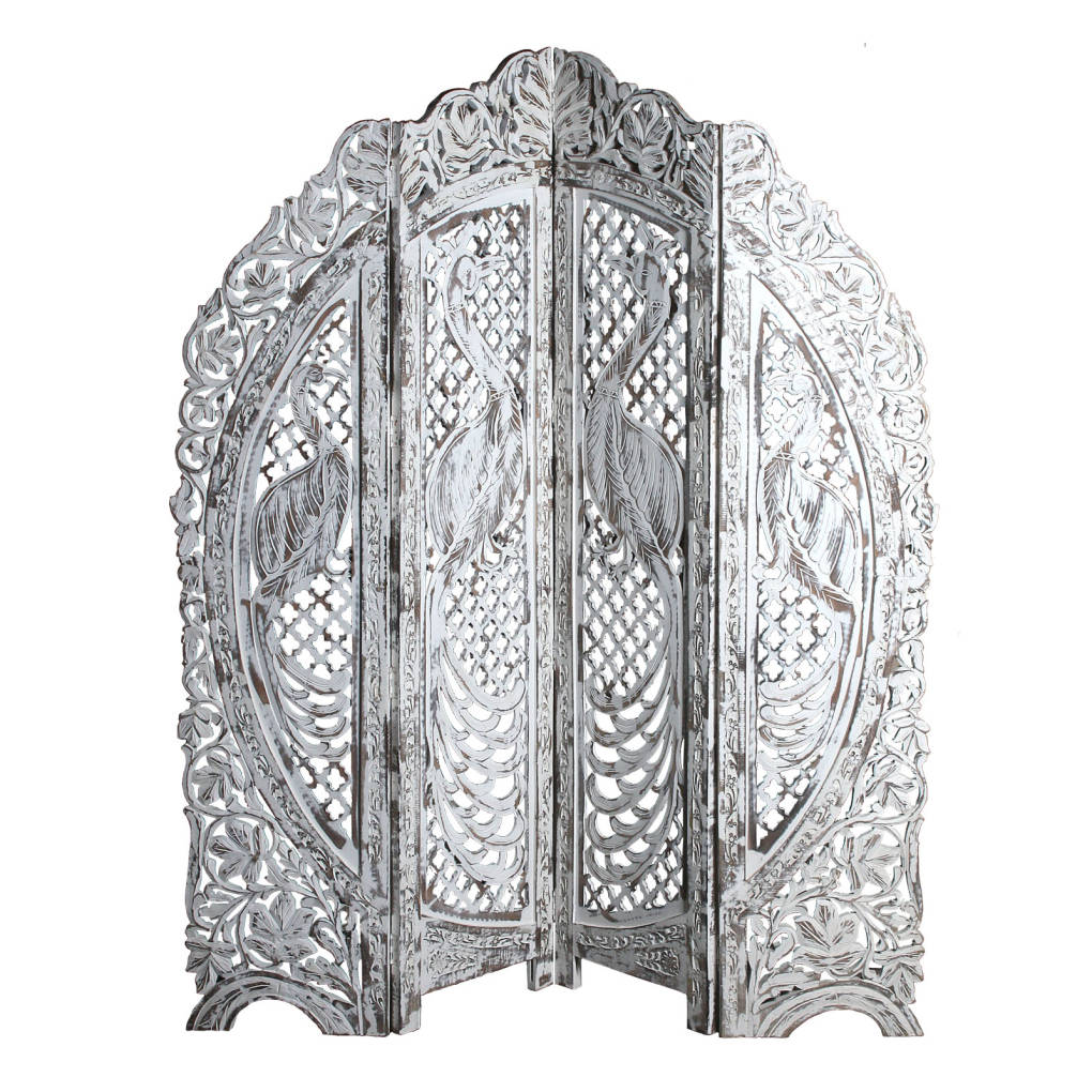 Беленая деревянная ширма из дерева, станет практичным предметом интерьера и самостоятельным арт-объектом.